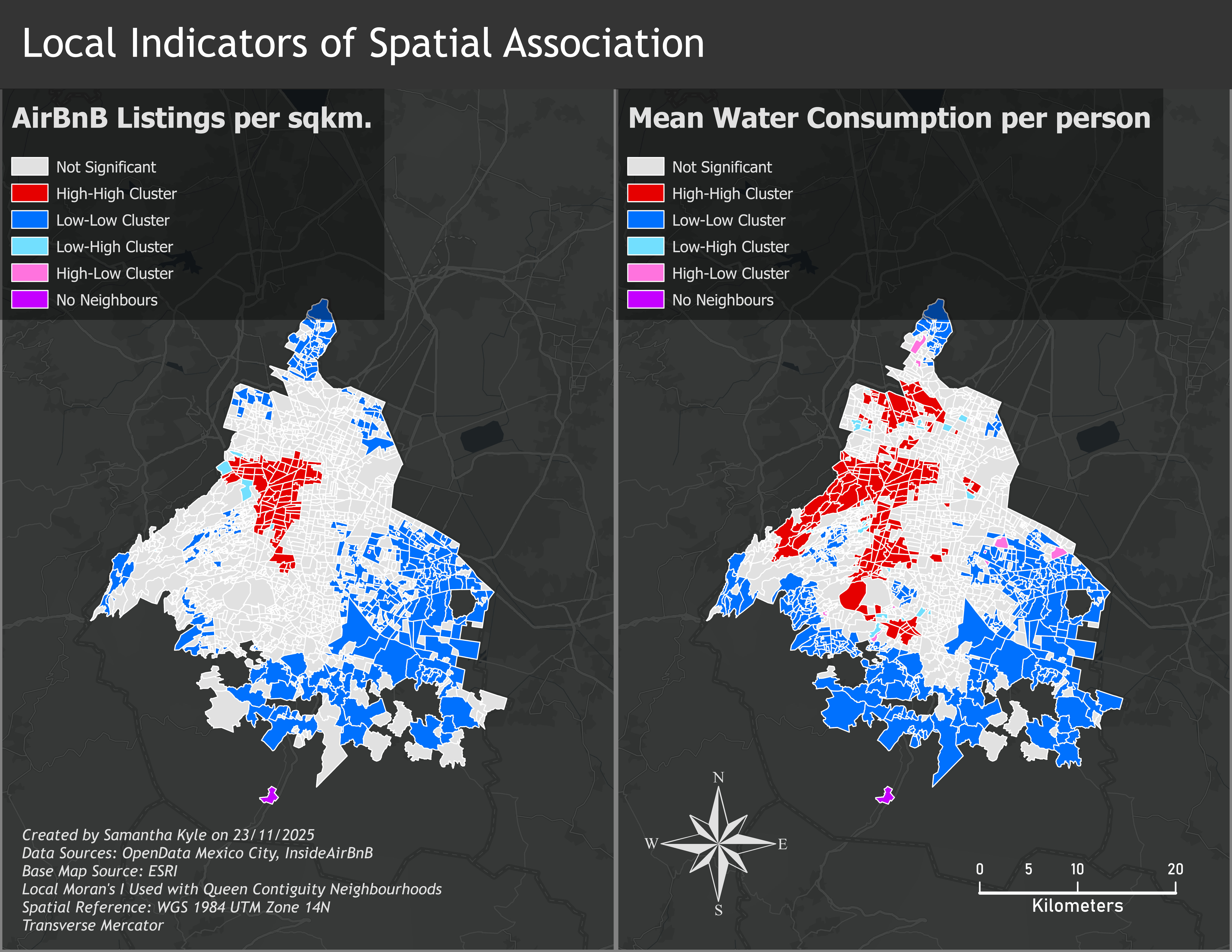 This report investigates the relationships between residential water consumption and AirBnB densities across Mexico City, Mexico to support a broader exploration of the impacts of 'digital nomads' and 'expatriates' on Mexico City's historic droughts.